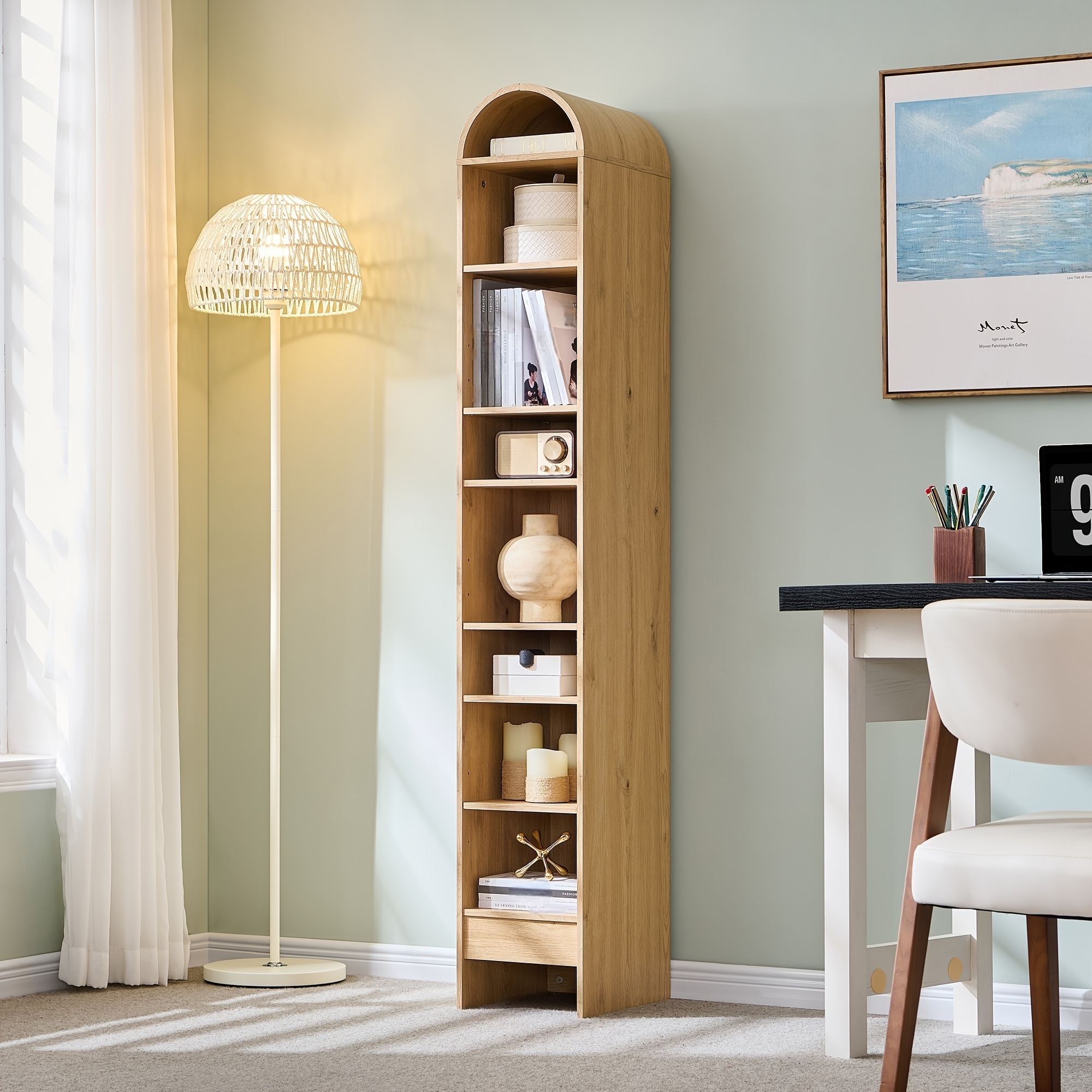 5-Tier Geometric S-Shaped Bookcase, Rustic Wooden Room Divider Storage Display Shelf, 62.5\